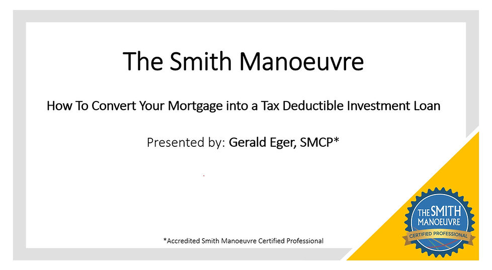 The Smith Manoeuvre is a powerful financial strategy that enables Canadian homeowners with a mortgage to build wealth, reduce their taxes and pay off their mortgages in record time. How? Simply by making your regular mortgage payment. This strategy can ultimately lead to a stable, secure and stress-free financial future for you and your family.